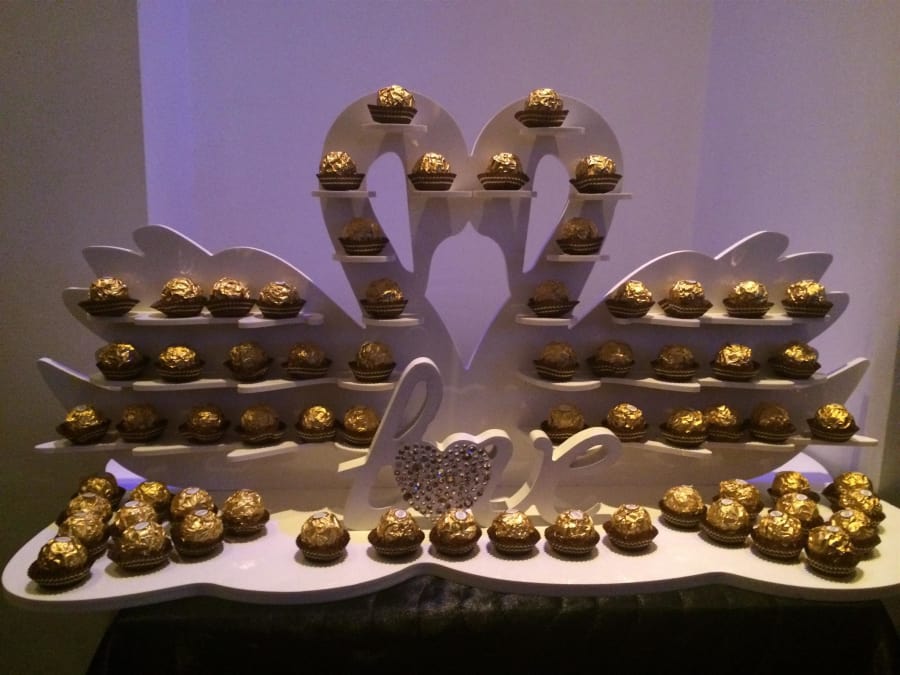 All stands come filled with the luxury ferrero Rocher chocolates.Perfect for both private and corporate events, makes a beautiful focal point , which can also be used as a desert option.